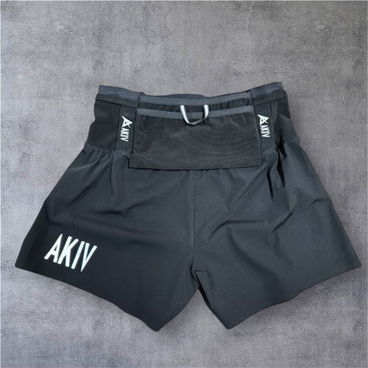 AKIV 2-in-1 Trail Running Shorts Silver Logo Unisex | Inner Tight | Black